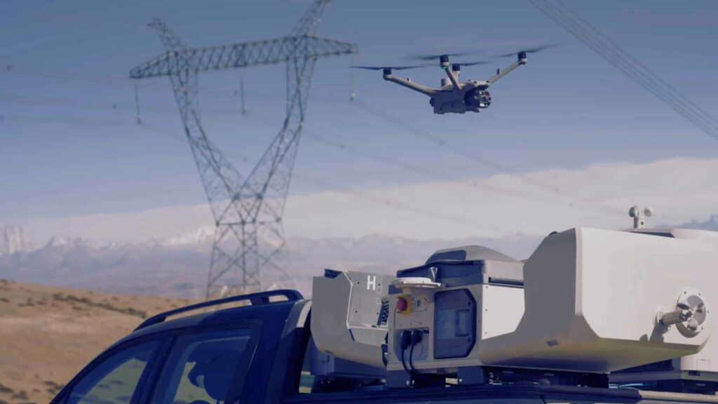 - Drony provádějí nepřetržitý dohled z výšky díky širokoúhlé, přibližovací a termální kameře, laserovému dálkoměru a infračervené detekci pohybu. Dron je odolný vůči dešti, prachu i větru, zvládne samostatně návrat do nabíjecí stanice a vydrží 50 minut ve vzduchu.