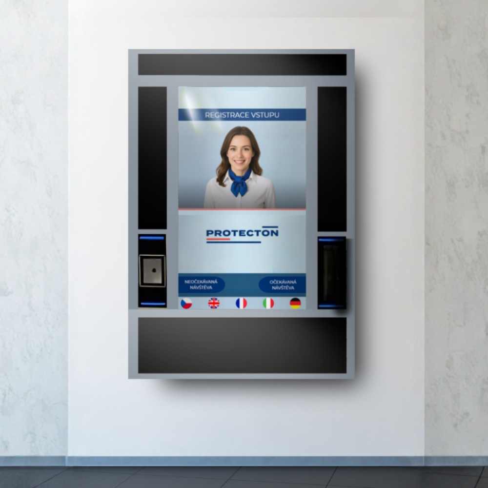 Moderní samoobslužná recepce kombinuje elegantní přizpůsobitelný design s nejnovějšími technologiemi pro rychlé a bezpečné odbavení návštěvníků. Díky AI rozpoznávání obličeje dokáže systém identifikovat osoby a propojit se s parkovacím systémem, podatelnou či telefonní ústřednou pro maximální efektivitu. Recepce umožňuje samoobslužné odbavení včetně kontroly dokladů – systém dokáže odhalit i falešné nebo odcizené doklady – a vydávání karet, QR či čárových kódů. Návštěvníkům poskytuje informace o areálu, možnost vyplnění bezpečnostního dotazníku a absolvování BOZP školení při vstupu. E-recepce umožňuje vizuální přizpůsobení digitální recepční podle preferencí klienta. Díky předdefinovaným tvářím a charakterům si zákazník může zvolit vzhled recepční, která se zobrazí na hlavním panelu – a tím sladit celkový dojem s firemní identitou, prostředím recepce nebo komunikačním stylem společnosti. Každá z dostupných vizuálních variant byla navržena tak, aby působila profesionálně, reprezentativně a zároveň lidsky. Tato flexibilita podtrhuje moderní a individuální přístup k návštěvnické zkušenosti. Automatizace snižuje náklady na provoz recepce, zrychluje odbavení a systém lze dále rozšiřovat o nové funkce, včetně platebního automatu pro hotovost i karty.
